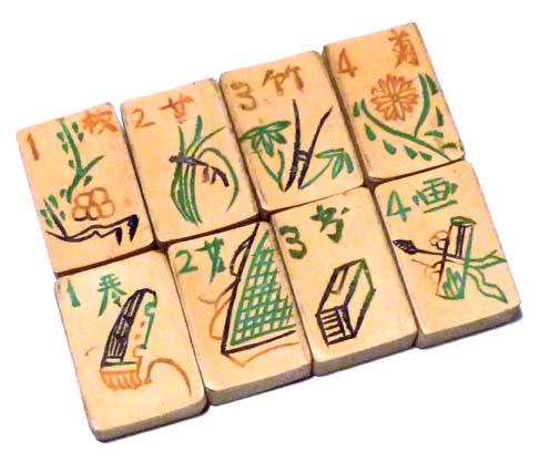 Tiles (21x32x12mm) are Chinese. The bamboo is of a good quality. The engraving is plain. Bamboo 1 is very crude. There are 3 spare tiles.