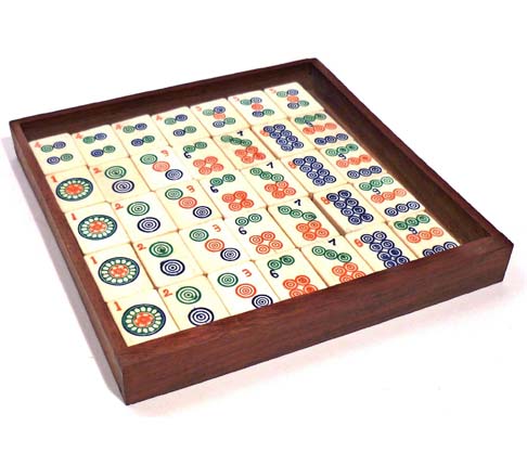 Tiles (20x30x13mm) are of good quality bone and bamboo. The engraving is also good. There are 4 spare tiles.