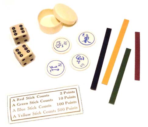 Counters are celluloid strips. Color (and length) specify their value. (See Stick-sticker.)